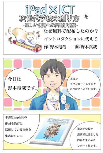 久しぶりの更新です。昨年の7月に当方が編集・無償公開した「iPad×ICT 次世代学校の創り方-正しい活用への実践事例集-」のイントロダクションとして用意したマンガを、こちらで全体公開致します。作画は私の実の兄で漫画家である野本 真哉(のもと まさや)に…